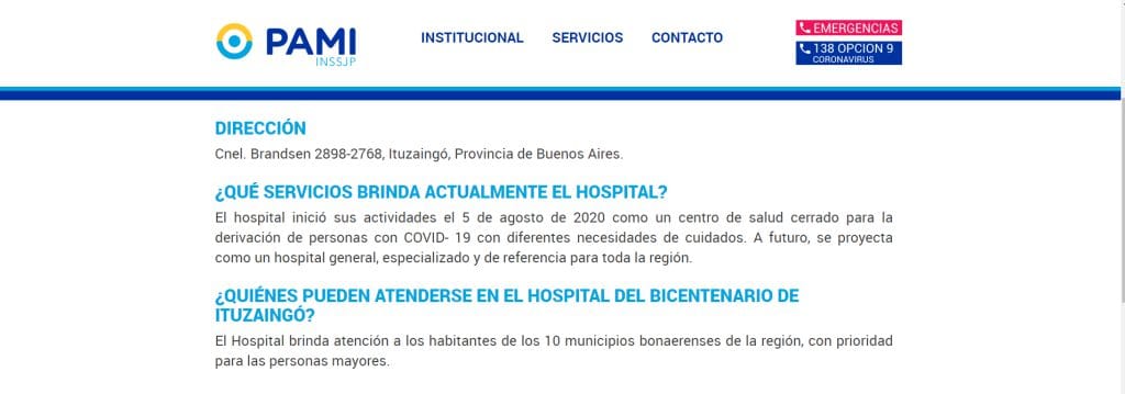 El funcionamiento del hospital del Bicentenario, se rige por un convenio firmado en agosto del año 2020 entre la presidenta del PAMI, el intendente municipal y el ministro de salud de la Provincia. En su articulo tercero, el convenio afirma que el hospital del bicentenario será un Hospital que atenderá a toda la comunidad de Ituzaingó bajo el sistema S.A.M.I.C.
