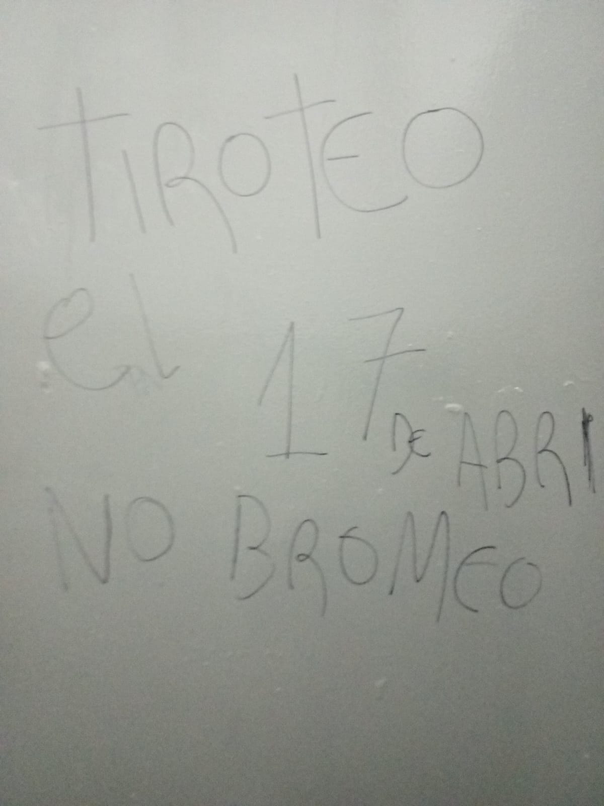El mensaje escrito en los azulejos del baño decia: "Tiroteo el 17 de abril, no bromeo".