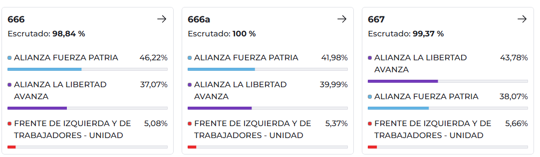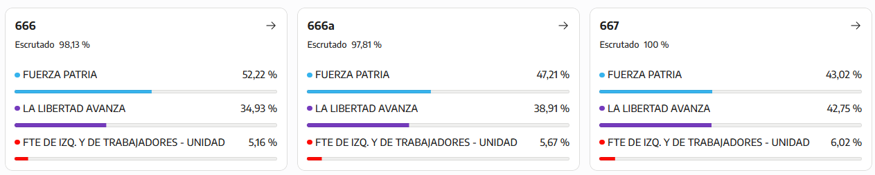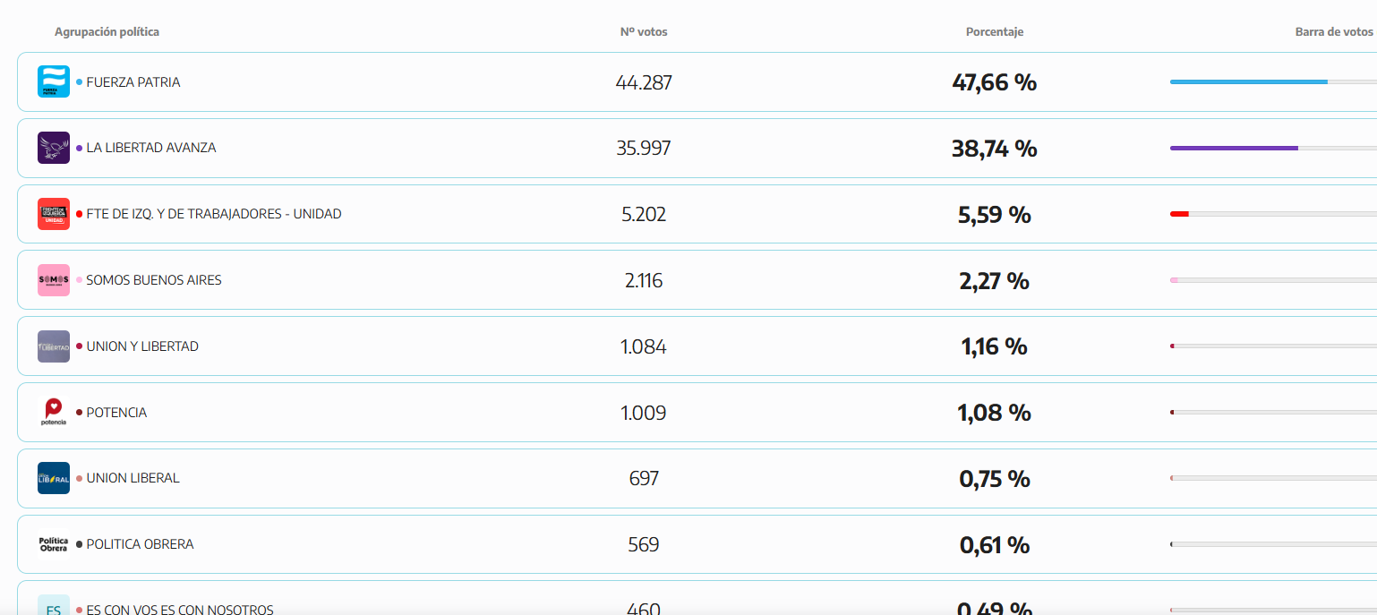 En primer lugar, la suma de los 3 circuitos electorales indica que Fuerza Patria perdió 900 votos y La Libertad avanza sumó 6200. Los 900 votos que pierde FP claramente son los del padrón de extranjeros que no podían votar. La diferencia que marcan los porcentajes (47% en septiembre y 42% en octubre) están relacionados con el computo sin los votos en blanco y nulos que en octubre fueron casi inexistentes. O sea el peronismo sacó los mismos votos que en septiembre. El tema es de donde salieron los 6000 votos de LLA.