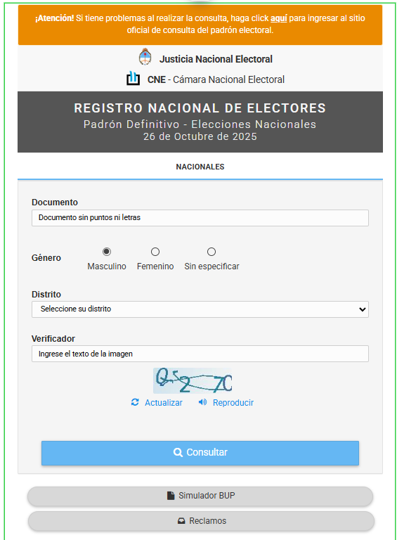 Como es habitual en cada año electoral, la Cámara Nacional Electoral (CNE) pone a disposición el padrón para que los ciudadanos puedan verificar y consultar su lugar de votación.