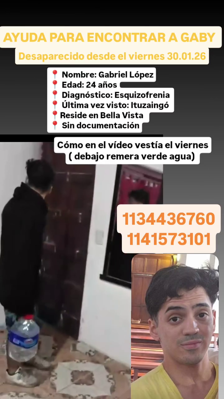 Una familia de la Zona Oeste vive horas de angustia y desesperación tras la desaparición de Gabriel López, un joven de 24 años del que no se sabe nada desde la madrugada del sábado. La situación es crítica porque Gabriel padece esquizofrenia y se encuentra sin su medicación, lo que lo deja en un estado de extrema vulnerabilidad.