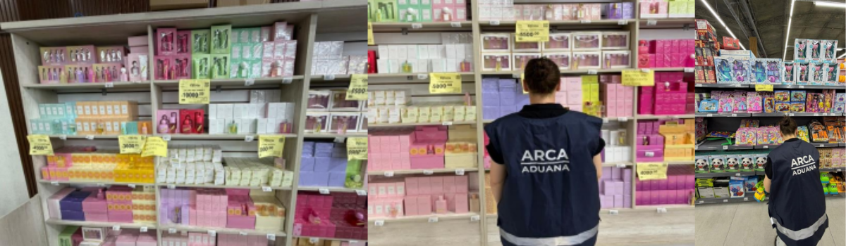 Las imágenes del operativo muestran al personal de ARCA relevando las nutridas góndolas de los comercios, repletas de cajas de fragancias, juguetes infantiles, cajas de herramientas y equipos electrónicos listos para la venta.