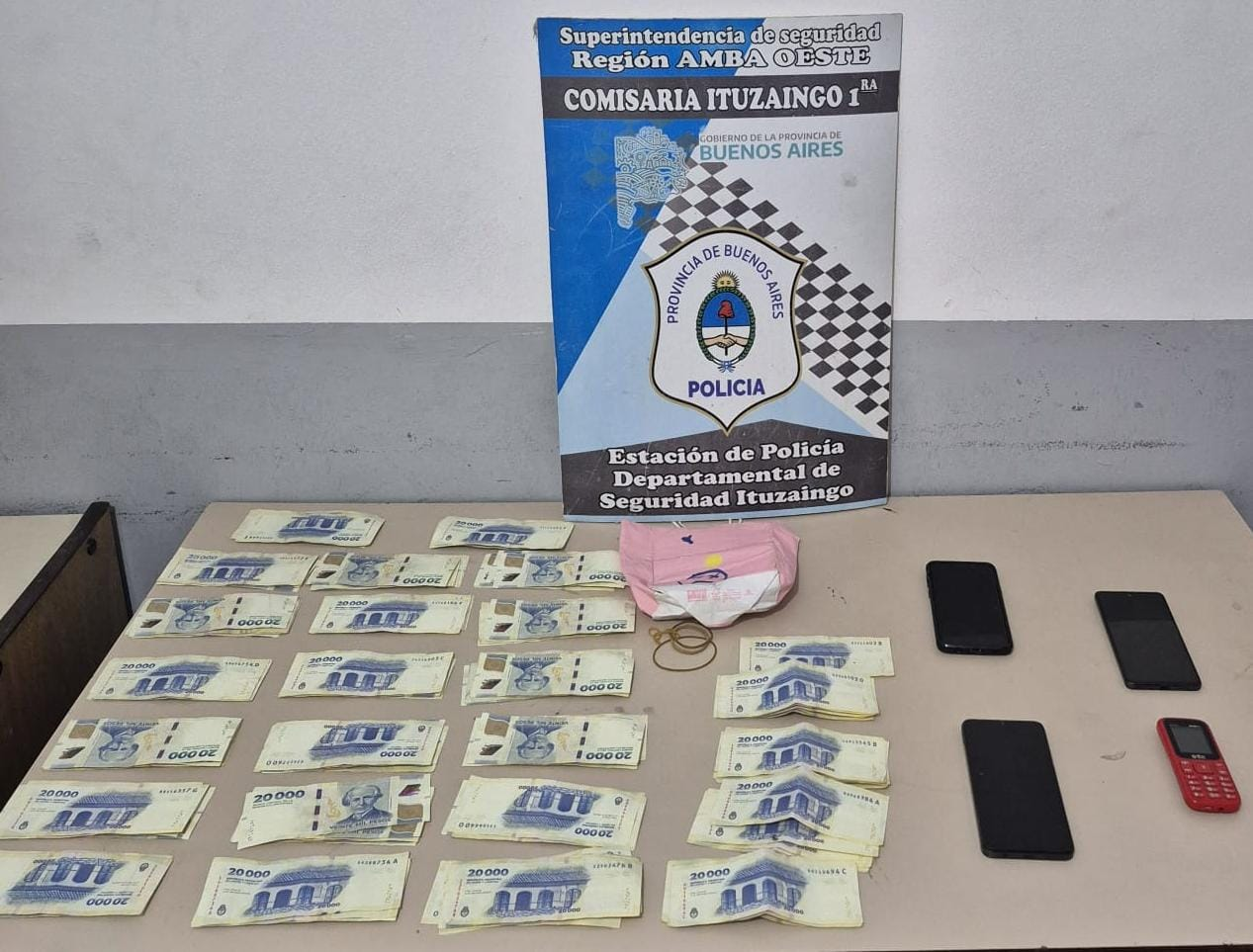 Al ser capturado, le secuestraron la camioneta, su celular y 700.000 pesos injustificados. Horas después, la Policía allanó su casa en la calle Videla al 1900 e incautó otros 2.400.000 pesos (coincidentes con el botín) y cuatro celulares clave para las pericias.