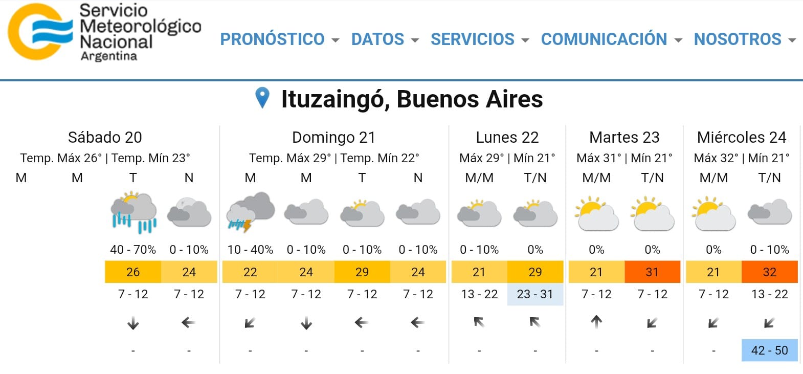 El informe elaborado por el Servicio Meteorológico Nacional (MSN) ha anticipado que, a lo largo de este fin de semana, la jornada se presentará inestable con la probabilidad de chaparrones durante el desarrollo de ambos días. Además, según lo informado por el SMN, la temperatura -en localidades como Ituzaingó, Morón y Hurlingham- oscilará entre los 24 y los 28 grados.
